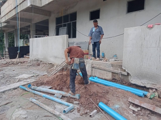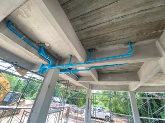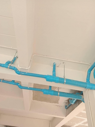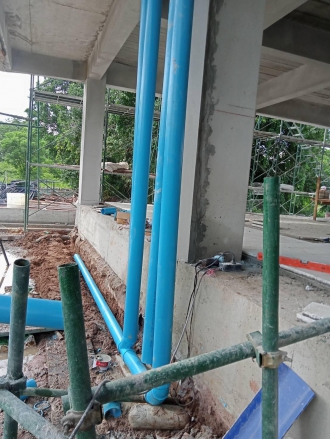 งานระบบประปาพร้อมมอเตอร์ควบคุมการตัดน้ำ และ การไหลท่อน้ำทิ้ง