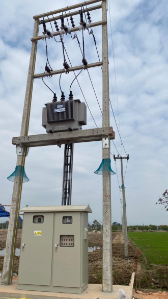 งานระบบไฟฟ้าแรงสูง แซมไลน์ จากไลน์ไฟฟ้่าหลวง พร้อมหม้อแปลง และ ตู้ สำหรับ ไฟฟ้า ก่อสร้างโรงงาน