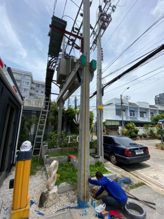 งานปรับปรุงระบบกาวด์แรงสูงพร้อมติดตั้งกาวด์หม้อแปลง onetime เดินสามเหลี่ยม