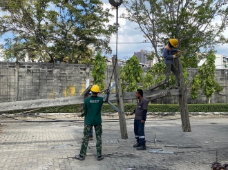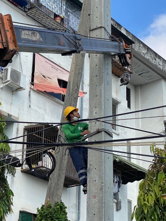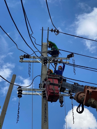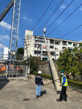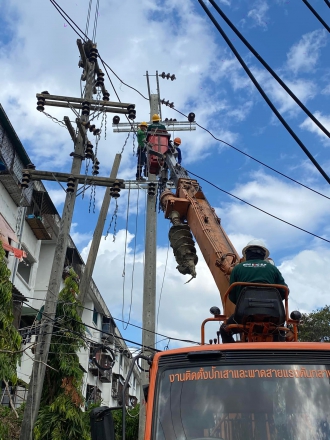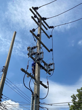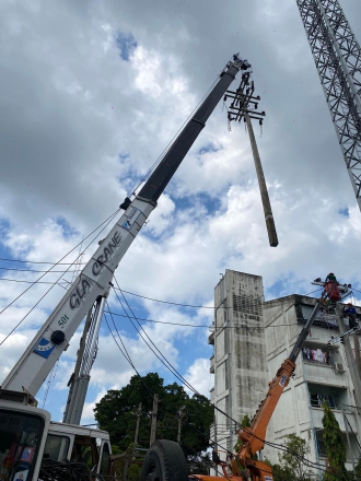 งานปรับปรุงระบบไฟฟ้า แรงสูง ปักเสาเสา 14.30 เมตร พร้อมเปลี่ยนอุปกรณ์บนหัวเสา